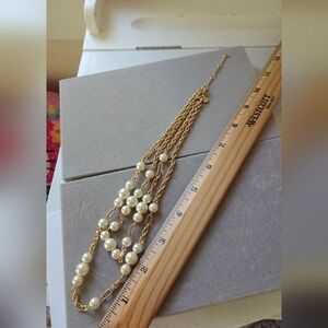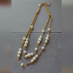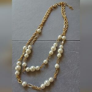 J. Crew Layered double strand faux pearl and gold tone Chain link necklace