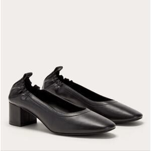 Everlane The Day Heel Black Leather Block Shoes Women's Size 6 Ballet Flats