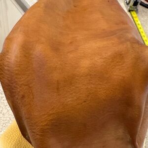 I tried to get a better picture of the heart shaped stain. I have not had the bag professionally cleaned. I did use some leather conditioner on it. Also, there are some small spots that are noted in the photos as well- just wanted to provide as much info as possible