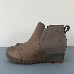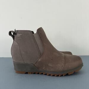 NWT Sorel Evie Quarry Gray Gum II Waterproof Leather Wedge Boots