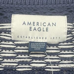 American Eagle Polo Shirt Mens XS Navy Blue Cotton Crochet Striped Checkered New