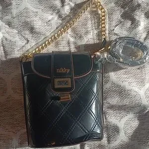 Nicole Lee Black Quilted Crossbody Bag with Gold Chain