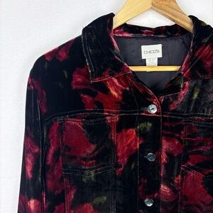 Chico’s Floral Crushed Velvet Shirt Jacket Holiday Elegant Office