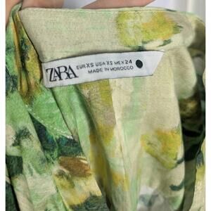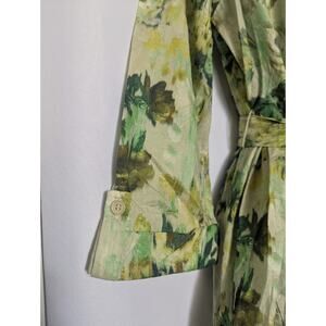 Zara Green Tropical Floral Button Front Tie Waist Shirt Maxi Dress Size XS