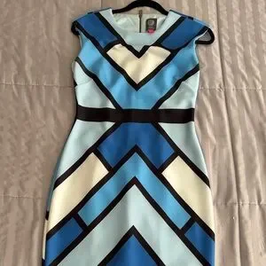 Vince Camuto Geometric Blue and Black Dress