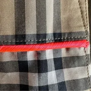 Burberry Tan Plaid Button-Up Shirt with Pink Trim Detail