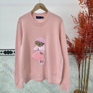 Charming pink sweater featuring an adorablebear design. Soft and stylish. Perfect for casualwear.