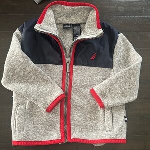 Nautica Kids Gray and Black Puffer Jacket with Red Trim
