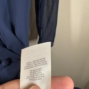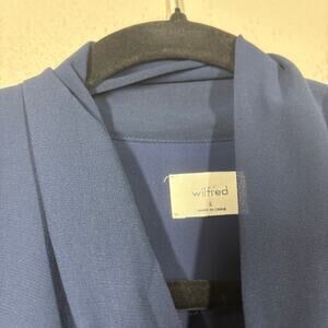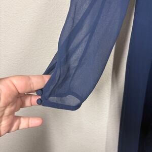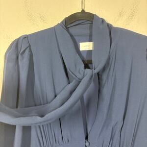 Wilfred 6 Mambo Chiffon Maxi Dress Navy Necktie Button Down Puff Long Sleeves