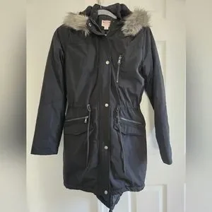 Mossimo Women's Black Parka Coat with Faux Fur Trim Size Small