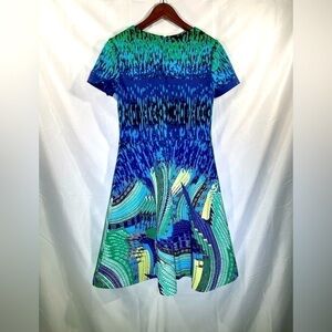 Badgley Mischka Womens Fit & Flare Dress Blue Green Yellow Size 4