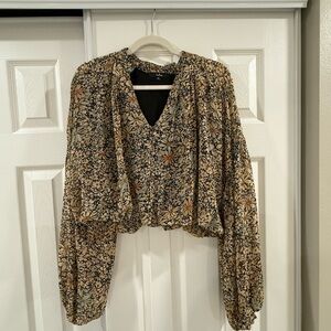 Lulus Season Of Blooms Cream Multi Floral Print Balloon Sleeve Top Beige