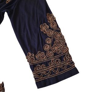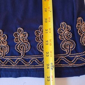 Lauren Michelle Womens Navy Blue Braided Trim Pullover Tunic Blouse Large