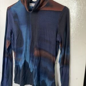 Michael Stars Small Blue and Brown Long Sleeve Turtleneck Top