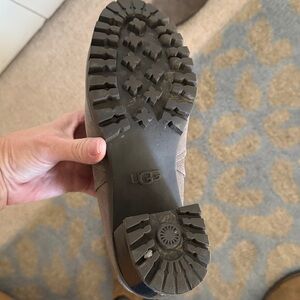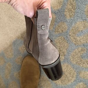Chic suede ankle boots by UGG. Comfortable and stylish. Ideal for versatile wear. Taupe grey or stone color.