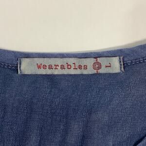 XCVI Wearables L Womens Blue Linen Cotton Blend Shirt Dress Breathable Travel