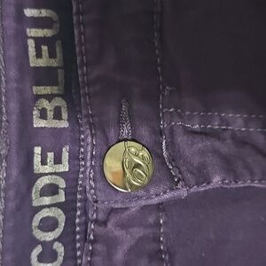 Code Bleu Women's Dark Purple Jeans Beaded And Embroidered Fleur De Lis