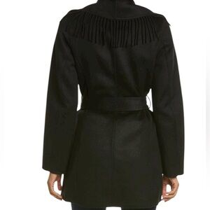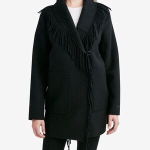 The Liza double face fringe coat Tahari features chic fringe trim throughout for a Western-inspired vibe that also keeps you cozy.