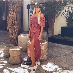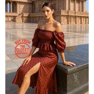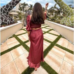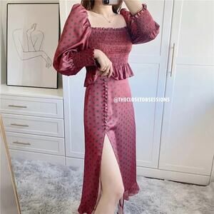 ❤️ **RARE Blogger Fave!** This **ZARA Burgundy Polka Dot Co-Ord Set** combines vintage charm with modern femininity. The flattering silhouette and romantic details make it a perfect standout for brunches, garden parties, or holiday events.