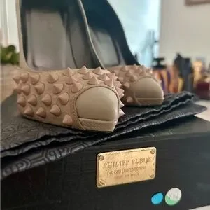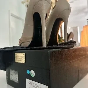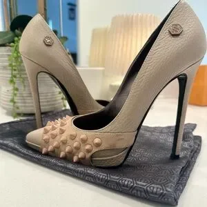 Beige spiked heels- unique, chic, and in excellent condition! Includes original box and dust bag.