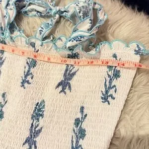 Block-printed by hand in beautiful shades of blue, maxi length Ellie dress is finished with pretty scallops and contrasting tie straps. With a smocked body and full, maxi length, the Ellie dress is a beautiful statement piece. Side seam pockets. Lined skirt. Organic cotton. Pink City Prints was founded to preserve the traditional crafts of India's Pink City and our collections speak to a more thoughtful, authentic way of life.