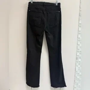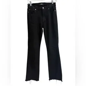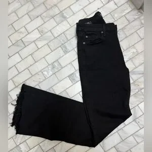 7 FOR ALL MANKIND Women’s Black Kimmie Bootcut Jeans - Size 27. The perfect pant that could work for a more casual look or to wear to the office with a fun blazer. The pants are bootcut with a raw hem. They have pockets, belt loops and a button and zipper fly. Great condition!