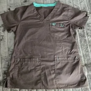 Dark Grey Med Couture V-Neck Scrub Top Women's Size Small