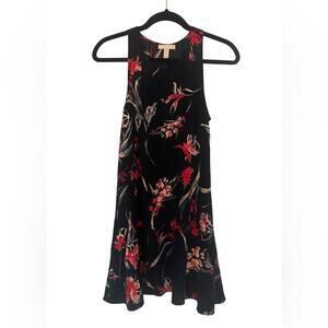 Chic and feminine, this Leith dress features a flowy silhouette with a black base and artistic floral print in red, blush, and neutral tones. The sleeveless cut and lightweight fabric make it perfect for layering or wearing on its own.