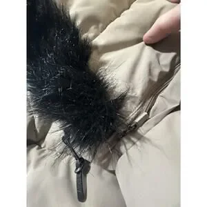 DKNY New York Women’s 2X Taupe Puffer Coat Faux Fur Hood Zip Front 2G 2TG