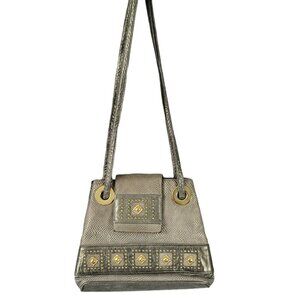 Bags by Pinky Vintage Metallic Silver Leather Shoulder Gold Studs Grommets USA