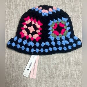 Acqua Granny square Crochet chunky knit Bucket Hat black pink blue NWT