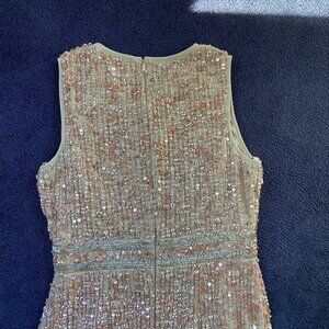 EUC Mac Duggal Sleeveless High Neck Beaded Midi Sheath Dress Sz 6
