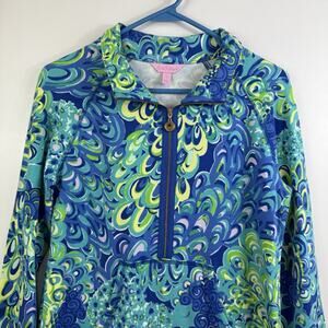 Lilly Pulitzer Skipper Popover Zip Jacket Sea Blue Lilly's Lagoon UPF 50+ Beach