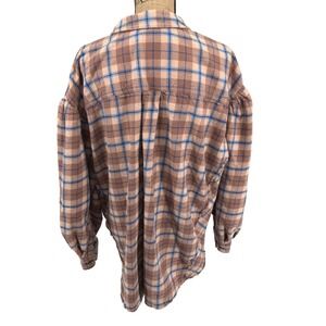 Free People We The Free Happy Hour Oversized Flannel Shirt LG Tan Button Front