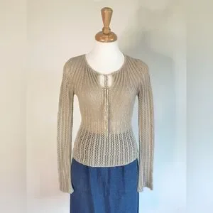 Vintage 90s crochet knit top with slightly belled sleeves