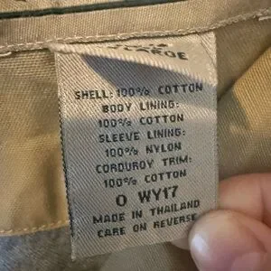 Good used condition with a few small faint stains marks on front pockets and back of jacket. No holes or big wear spots, all buttons present and work. Corduroy collar in great condition