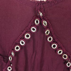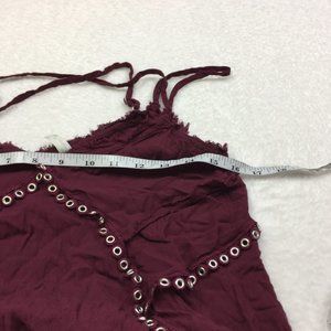 Free People Slip Dress Womans Sz M Red Burgundy Flowy V-Neck Studded Cross Back. Semi sheer perfect slip mini dress for summer, vacation, resort, beach or special occasion.