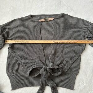3/$20 Gray Knit Open Front Cardigan Sweater with Buckle Detail tie waist
