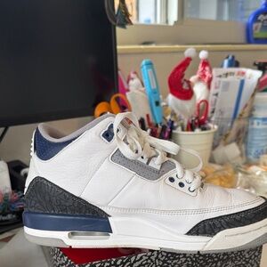 Air Jordan 3 Retro Midnight Blue with elephant print overlays on the toe and heels. Size 6.5 Y. Slightly worn.