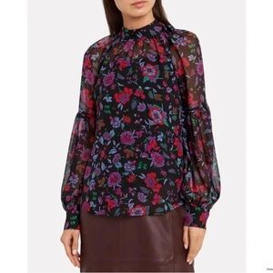 Veronica Beard Cicely Silk Floral Blouse Sheer Balloon Sleeve