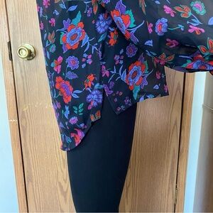 Veronica Beard Cicely Silk Floral Blouse Sheer Balloon Sleeve Size 8