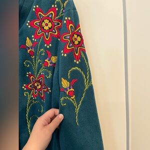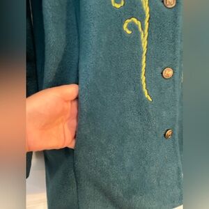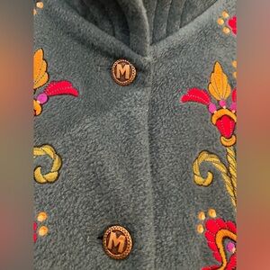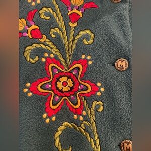 Bob Mackie Wearable Art floral embroidered quirky Boho whimsical Fleece Jacket L