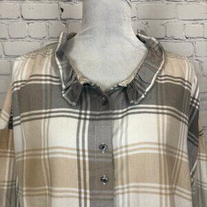 NWT Ann Taylor Gray Tan Plaid Buttondown Shirt Size XL