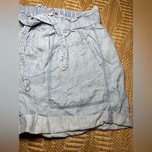 Aerie Women's Paperbag Chambray Light Blue Camp Shorts,Size XS,High Waist