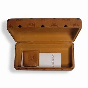 This listing is for a pair of signature logo monogram print MCM 54mm sunglasses in black and cognac paired with a signature MCM cognac colored logo case.
