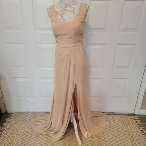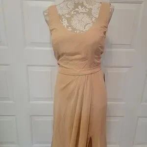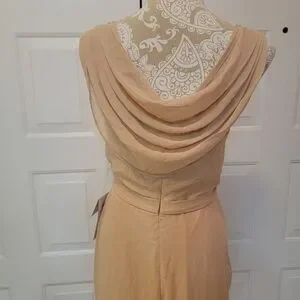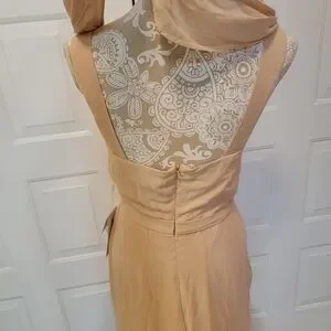 NWT neutral female dress with chiffon cowl back, cups and slit floor length