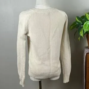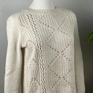 Old Navy Off White Open Weave Cotton Blend Sweater Size Small
