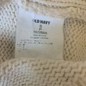 This charming Old Navy sweater features a delicate cable knit and open weave design, perfect for adding a touch of texture to your wardrobe! The crew neck and ribbed hem provide a classic, comfortable fit.
