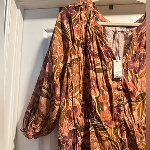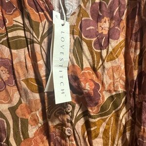 NWT Lovestitch Floral Button-Up 3/4 inch Sleeve Blouse Size Large