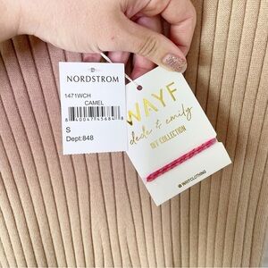 New Wayf x BFF Dede & Emily Hollie Long Sleeve Sweater Dress in Camel Size Small